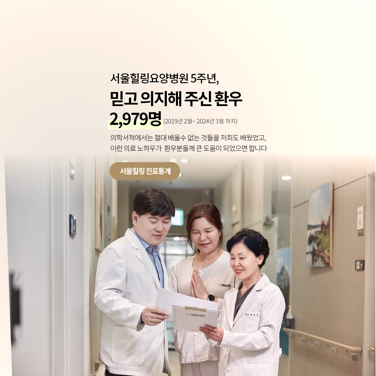 지난 5년간 2,979명, 이렇게 많은 환우분들이 서울힐링을 믿고 의지해 주셨습니다