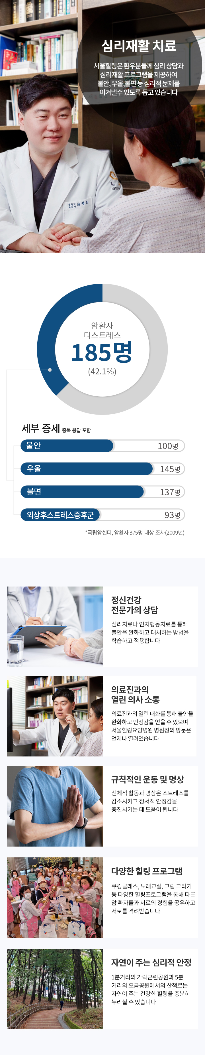 수술전 체력강화 프로그램, 자세히 알아보기 수술후 회복 프로그램, 자세히 알아보기 항암/방사선 치료 중 부작용케어 프로그램, 자세히 알아보기 항암/방사선 치료 후 일상복귀 프로그램, 자세히 알아보기 재발/전이 방지 면역강화 프로그램, 자세히 알아보기